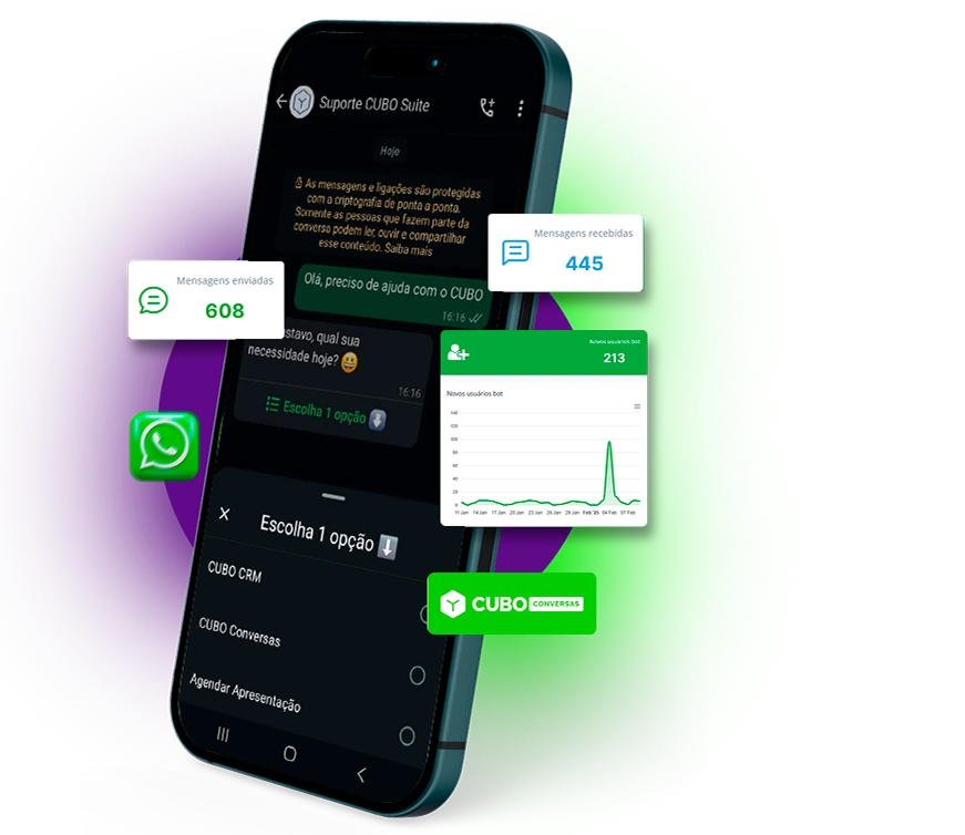 Com o CUBO Conversas, centralize todos os seus atendimentos em uma única plataforma, gerenciando múltiplos canais de WhatsApp, Instagram, Facebook e muito mais. Automatize interações com chatbots inteligentes, envie mensagens em massa e tenha uma experiência multicanal integrada, sem bloqueios ou limitações, garantindo um atendimento ágil e eficiente.